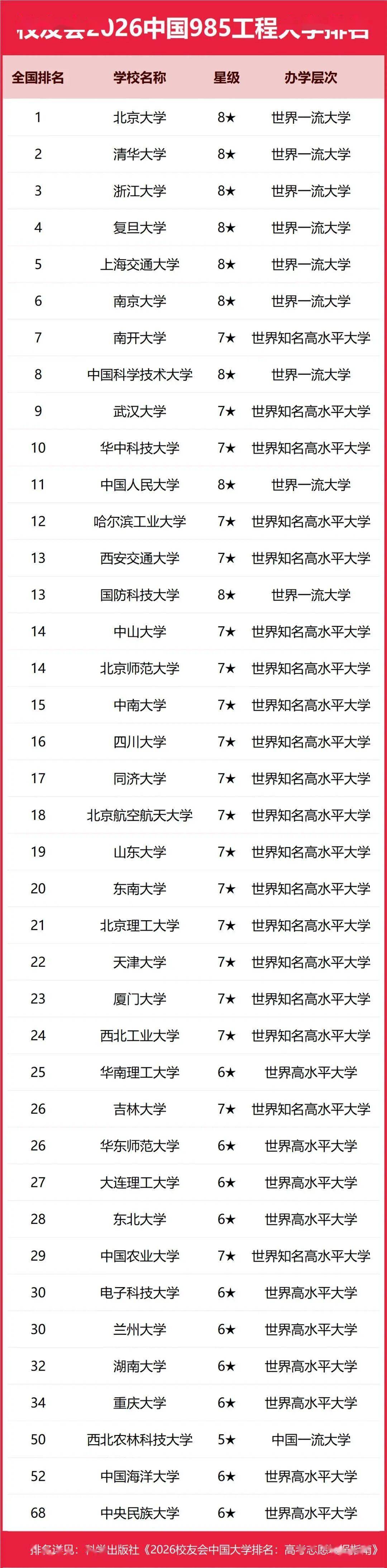 高校江湖,风云再起!校友会2026中国985工程大学排名震撼出炉,这哪里是榜单更新,分明是一场没有硝烟的顶级学府大乱斗!39所顶尖高校座次重排,看得人目瞪口呆,几家狂喜几家拍案,堪称近年最刺激的洗牌局!